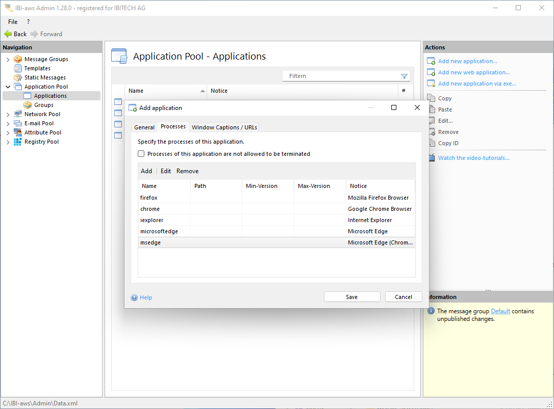 Add/edit process