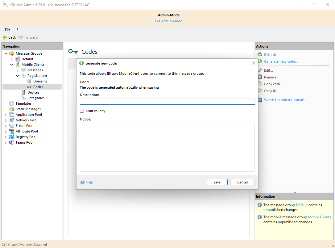 By generating a code, IBI-aws MobileClient users can register for the corresponding hint group using this code.