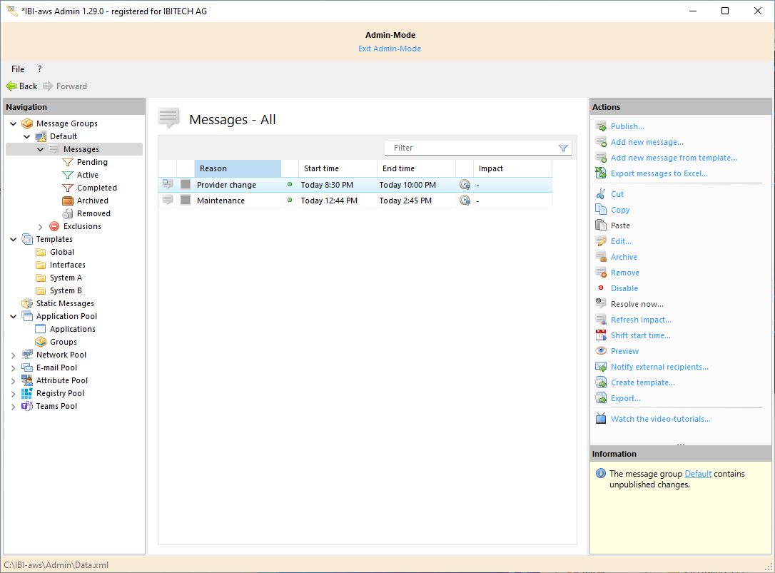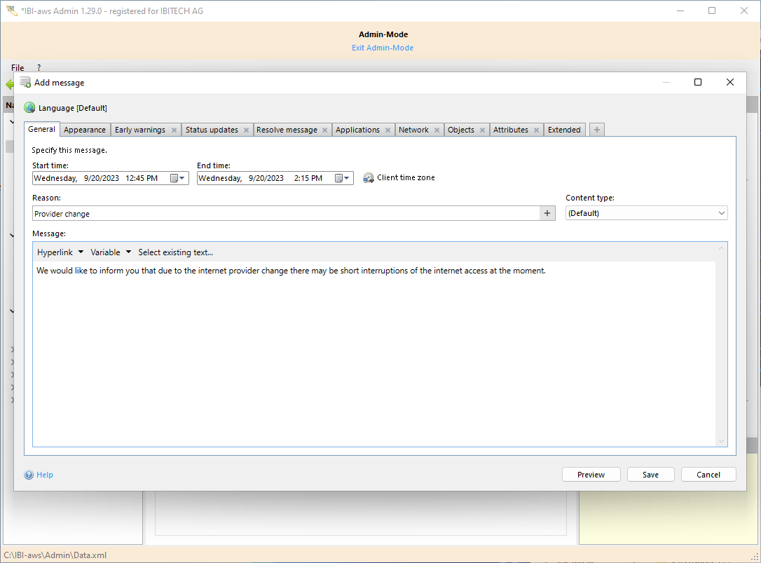 The message can be modified before it is added to the message list. Clicking on Save generates the message.