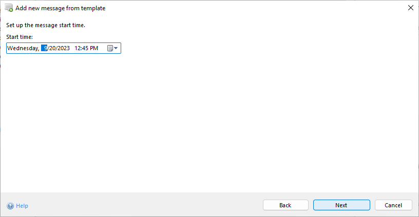 The steps outlined below are similar to the procedure just described (From a message list). The starting time of the message must be entered first.