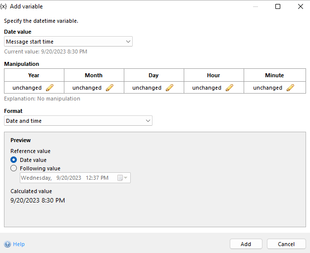 In case of a dynamic value, the selected modifier is added or subtracted to the respective date part of the previously specified date value.