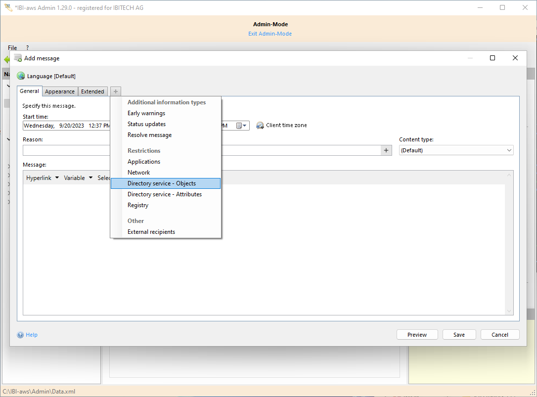 Directory service restrictions can originate from different directory services. In such a case the IBI-aws Client behaves as follows: