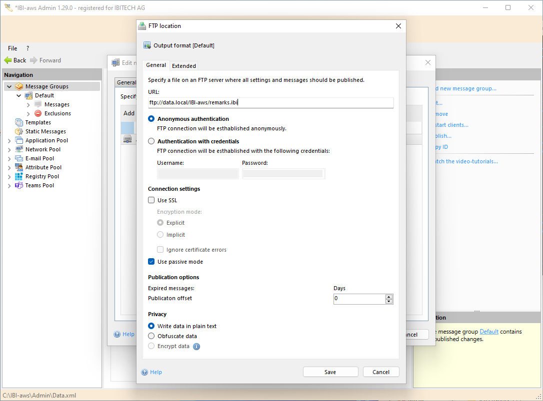 - Default (a message file for the IBI-aws Client will be created)