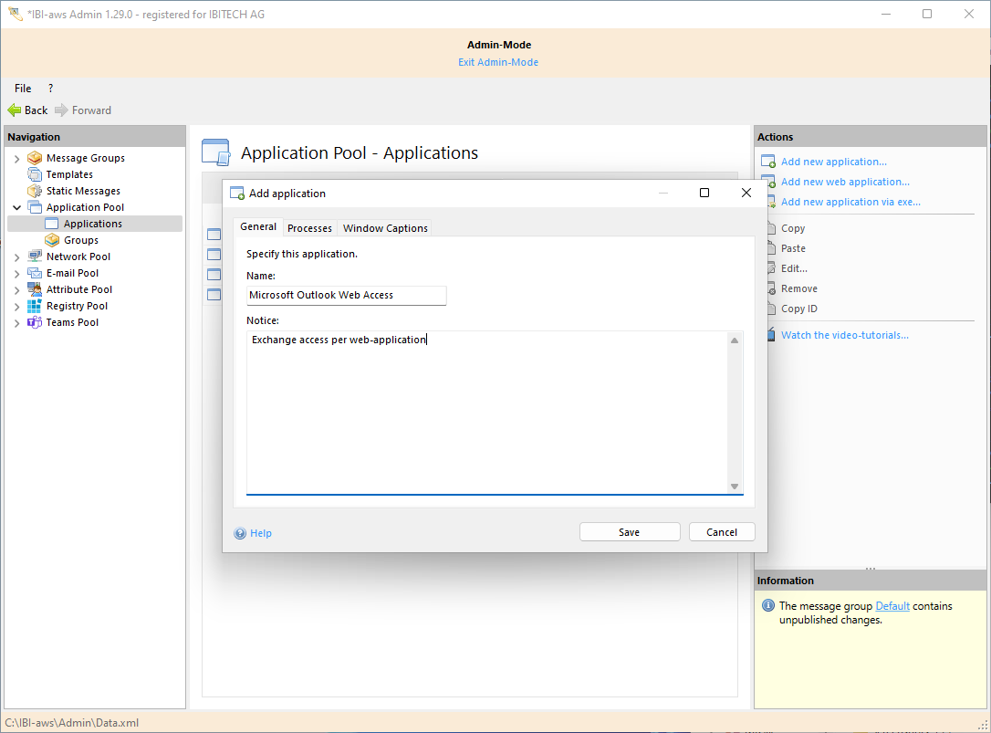 The General tab is used to set the general properties of an application.