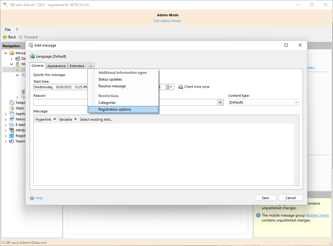 Mesasges that contain restrictions on registration options only appear to users who have used one of the specified registration options.