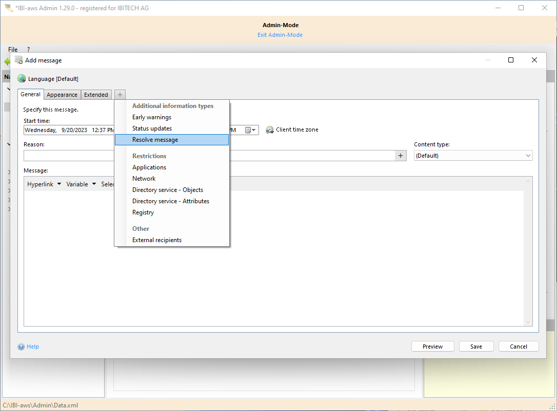 The content type offers the possibility to change the display of the resolve message. For a customized display, the IBI-aws skin must be extended by the design of the content type.