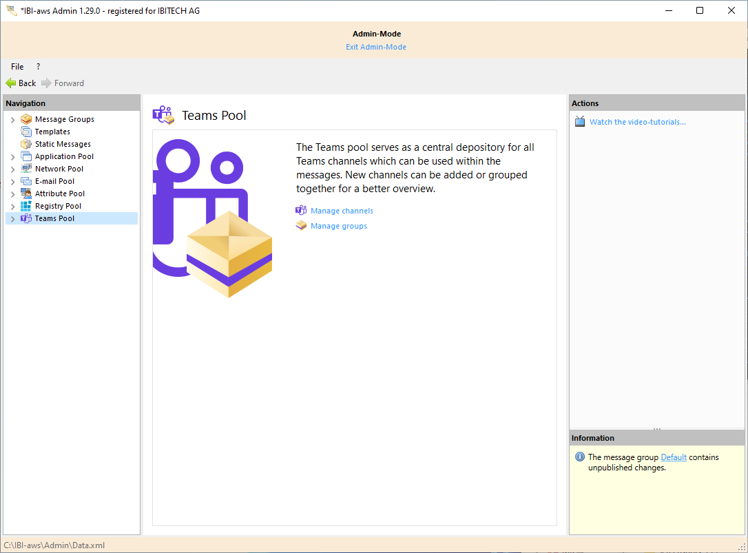 The Teams Pool serves as the central storage location for all Teams channels, in which messages should be published. To provide a better overview, Teams channels can be grouped just like applications are in the Application Pool.