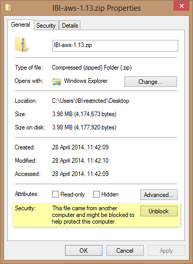Internet browswers, e.g. the Internet Explorer will mark our zip archives from the download area in the same way as they are downloaded from the internet. As soon as you unpack the zip archives using the zip compressor provided by Windows these markings will be transfered to the unpacked files.