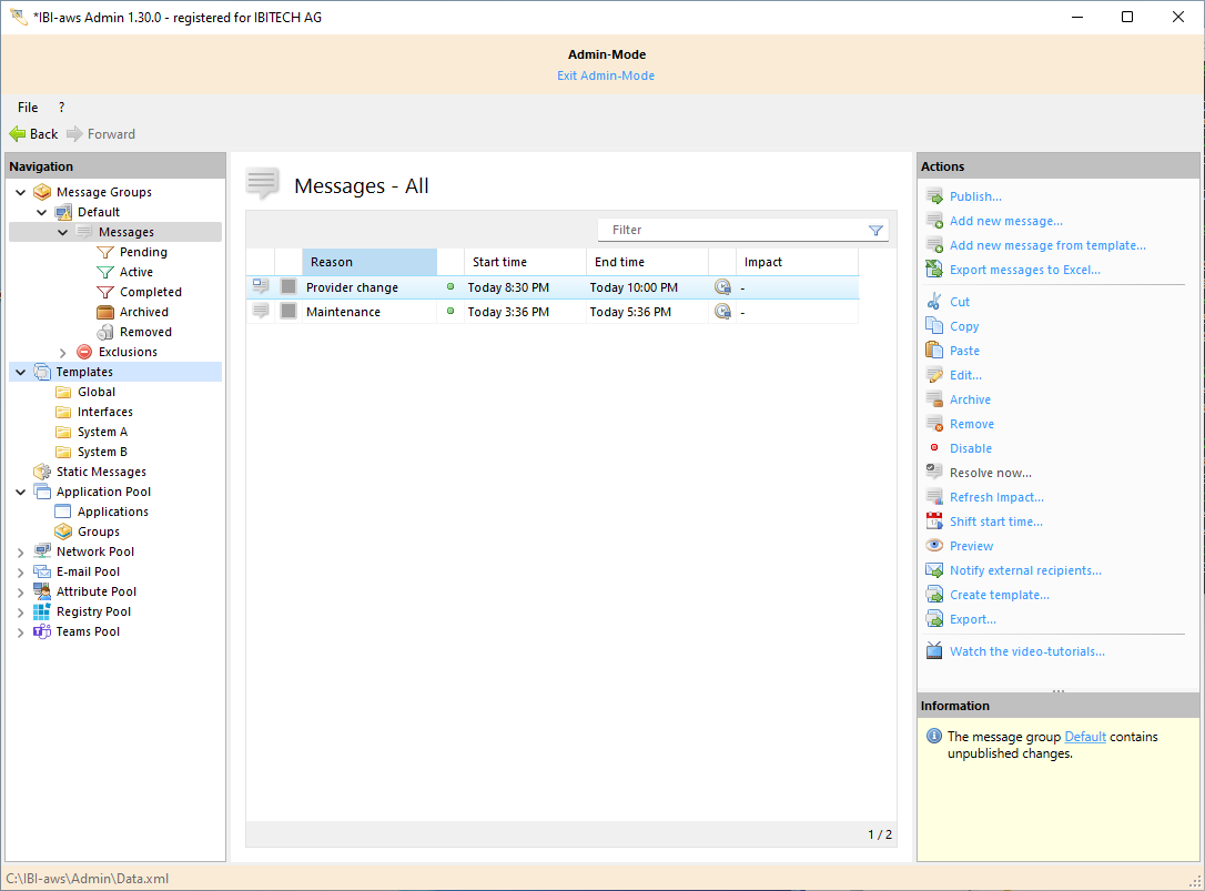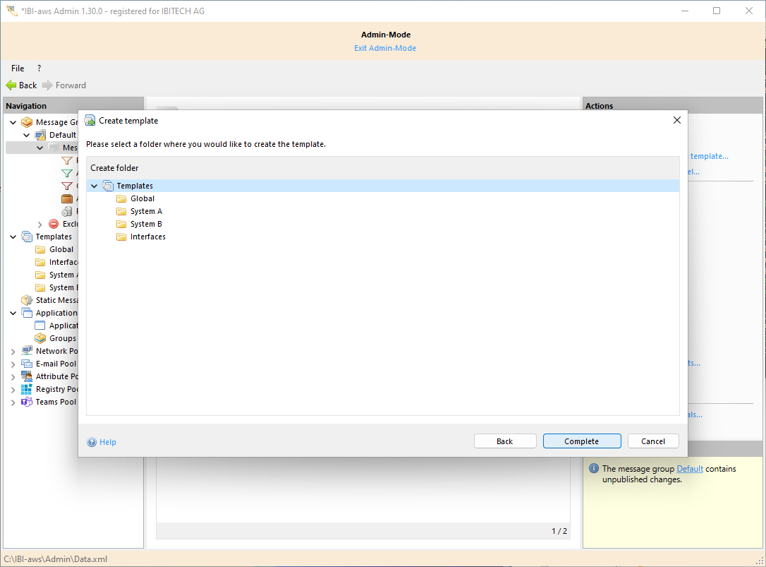 An existing message from the message list of a message group can be moved to a template folder in the Navigation pane by dragging and dropping.