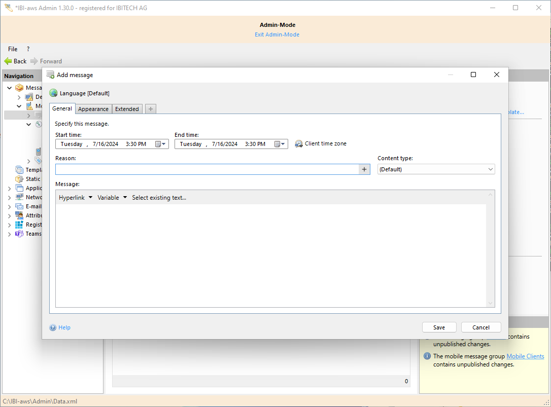 You can switch between the time zone settings Client time zone and My time zone to ensure that the message will be shown at the correct time worldwide.